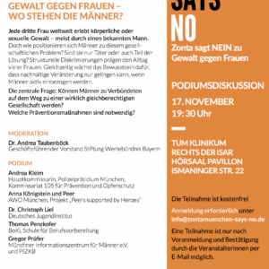 Mit unserer Kampagne Zonta says NO zeigen wir seit zehn Jahren rund um den 25. November – dem Internationalen Tag zur Beseitigung von Gewalt gegen Frauen – dass Zonta nicht wegschaut, sondern Nein sagt zu Gewalt gegen Frauen.